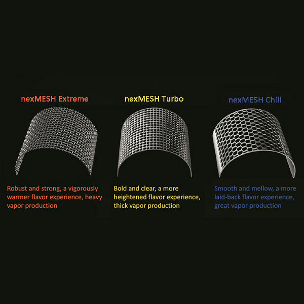 Tips: To cater to more vapers, 3 options of mesh coil have been included:nexMESH CHILL, nexMESH TURBO, and nexMESH EXTREME.Please note that the new mesh is not interchangeable with the...
