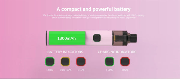 The Innokin Sceptre Tube Kit from Innokin, featuring an integrated 1300mAh battery, regulated wattage output, and holds up to 2ml of eJuice within the pod. Constructed from durable zinc-alloy, the chassis of the Innokin Sceptre Tube Kit offers a slim and portable chassis that delivers outstanding vapor and flavour. Holding up to 2ml of eJuice or nicotine salt within the pod, the Sceptre Tube Kit calls upon the Innokin S-Coil Series, granting a 0.5ohm option. In addition, the integrated 1300mAh battery allows for all-day vaping and can be recharged via MicroUSB Type-C Port at the base.