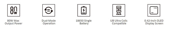 the Lost Vape Centaurus G80 AIO Pod Mod Kit, which features a 5-80W output range, a durable zinc and aluminum chassis, and a 5ml capacity in the Centaurus Boro Tank. This device is designed to blend visual appeal with top-tier vaping performance, offering a compact yet powerful solution. With an 80W output capability, the Centaurus G80 AIO is compatible with UB Ultra coils, allowing for easy coil installation at the base of the UB AIO Pod. Additionally, it supports most boro-style bridges when used with the Centaurus Boro Tank.