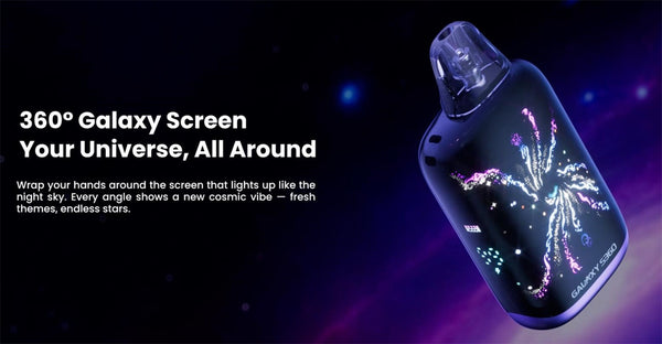 The Lost Vape Galaxy S360 Pod Kit redefines style and functionality with the world's first 360 degree Galaxy Screen in a pod system. Its ergonomic body houses a robust 1400mAh built-in battery, delivering a stable 5W–35W output for a variety of vaping preferences. Paired with the latest 0.8ohm Ursa V3 Top Filling Cartridge (2.5ml), it ensures smooth, flavorful vapor and mess-free refilling. The full-circle display provides intuitive access to all vital vaping information, including battery life, puff count, and working mode. Additional features include adjustable airflow, Type-C fast charging (5V/2A), and a lanyard attachment for convenience on the go. With Single Mesh and Dual Mesh modes, the Galaxy S360 optimizes vapor production and extends coil longevity, making it a versatile and premium choice for pod system enthusiasts.