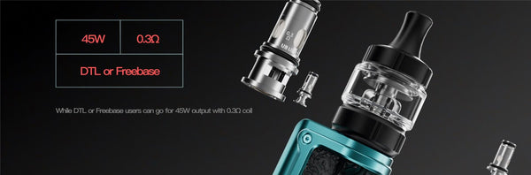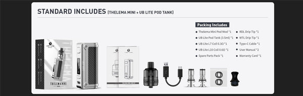 The Lost Vape Thelema Mini 45W Kit, a new generation of tank mods & pod mods with maximum 45W power. The cuter-mini size and built-in 1500mAh battery integrate harmony for satisfying a long-lasting vaping experience. Equiped with two different replaceable UB Lite coils, Thelema Mini constantly strives to provide the excellent flavor delivery and Tight MTL to DTL experience to achieve your nicotine satisfaction. All fit in an elegant and classical appearance, giving indeed the perfect choice as a starter kit.