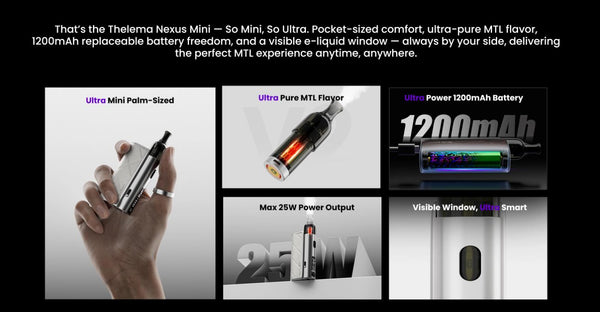 Overall, Thelema Nexus Mini balances portability, performance, and convenience, making it a solid choice for daily carry, discrete vaping, or those looking for a simple, reliable pod system.
